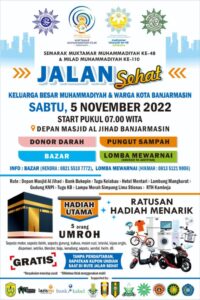 Jelang Muktamar ke-48, Keluarga Besar Muhammadiyah kota Banjarmasin Adakan Jalan Sehat Gratis Berhadiah Utama Umrah 27 Oktober 2022,