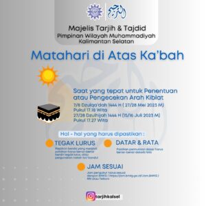 Matahari Di Atas Ka’bah, Majelis Tarjih & Tajdid PWM Kalsel Himbau Untuk Menyesuaikan Kiblat Shalat 27 Mei 2023,