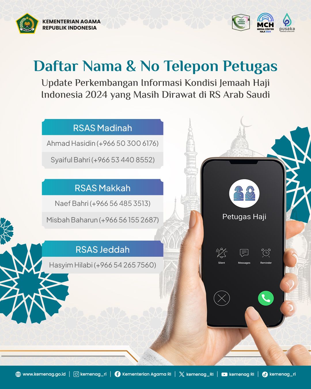 Daftar nama dan nomor untuk update perkembangan kondisi jemaah haji dirawat di Arab Saudi [Foto: kemenag.go.id]