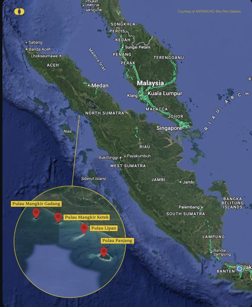 Aceh, mu4.co.id – Presiden Prabowo Subianto menetapkan bahwa 4 pulau yaitu Pulau Panjang, Pulau Lipan, Pulau Mangkir Gadang, dan Pulau Mangkir Ketek, sah menjadi wilayah Pemerintah Provinsi Aceh.