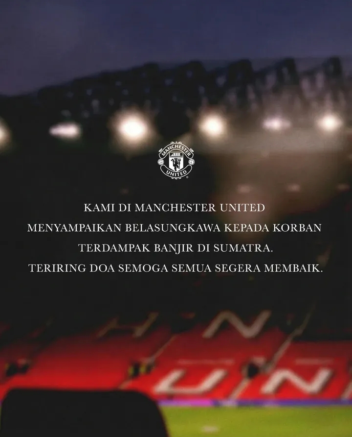 “Kami di Manchester United menyampaikan belasungkawa kepada korban terdampak banjir di Sumatra. Teriring doa, semoga semua segera membaik,” tulis Manchester United di laman Instagramnya, Kamis (04/12/2025).
