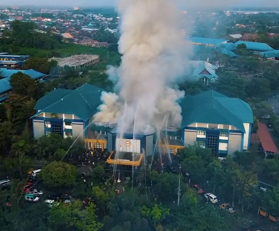 Dalam pernyataan siaran pers tersebut dijelaskan bahwa kebakaran telah menghanguskan ruangan aula dan lobby utama Gedung Rektorat ULM.