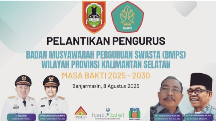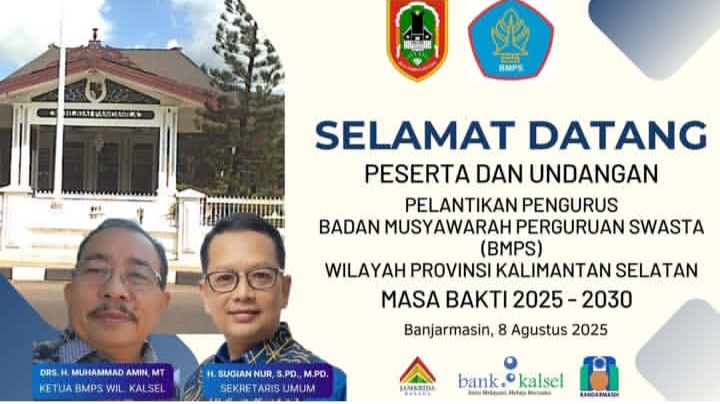 Banjarmasin, mu4.co.id – Badan Musyawarah Perguruan Swasta (BMPS) Provinsi Kalimantan Selatan akan menggelar Pelantikan Pengurus Periode 2025-2030 yang akan berlangsung di Gedung Mahligai Pancasila, Banjarmasin, pada Jumat (08/08/2025) pukul 09.00 Wita.
