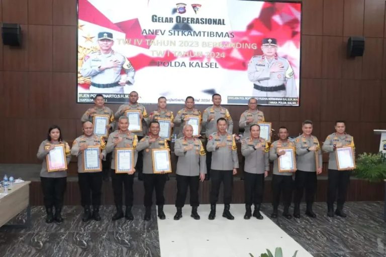 Penghargaan tersebut diberikan dalam acara gelar Operasional Triwulan I 2024 di Rupatama Polda Kalsel Banjarbaru, yang turut juga dihadiri oleh Wakapolda Kalsel, Brigjen Pol. Rosyanto Yudha Hermawan, serta Para Pejabat Utama Polda Kalsel dan Kapolres Jajaran, yang juga turut menerima penghargaan atas prestasi yang luar biasa.