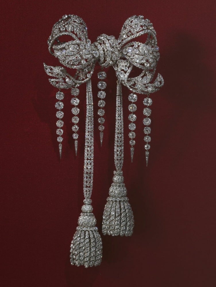 Dibuat oleh Alfred Bapst pada 1855, bros ini dihiasi dengan total 94 berlian.