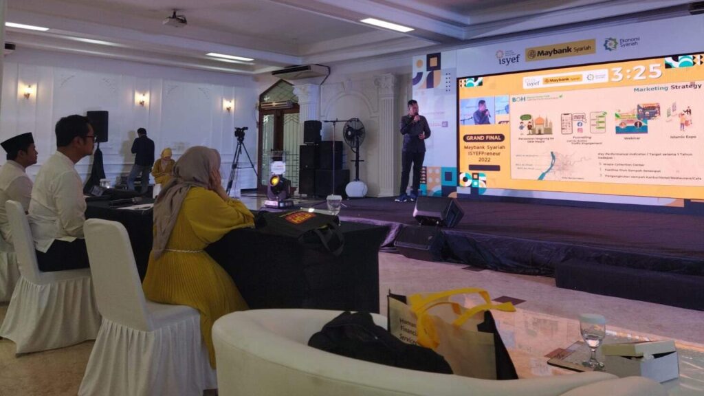 Dendy mendapat giliran urutan ke-5 (terakhir) untuk mempresentasikan mengenai Bank Sampah Masjid Al Jihad di hadapan dewan juri yang terdiri dari M Atras Mafazi (Ketua Umum ISYEF), Romy Buchari (Group Head Syariah Banking Maybank Indonesia) dan Atina Mautia (Founder Vanila Hijab).