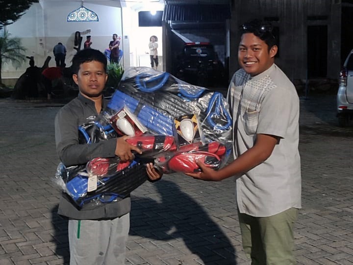 Penyerahan bantuan perlengkapan Tapak Suci oleh Lazismu wilayah Kalimantan Selatan.