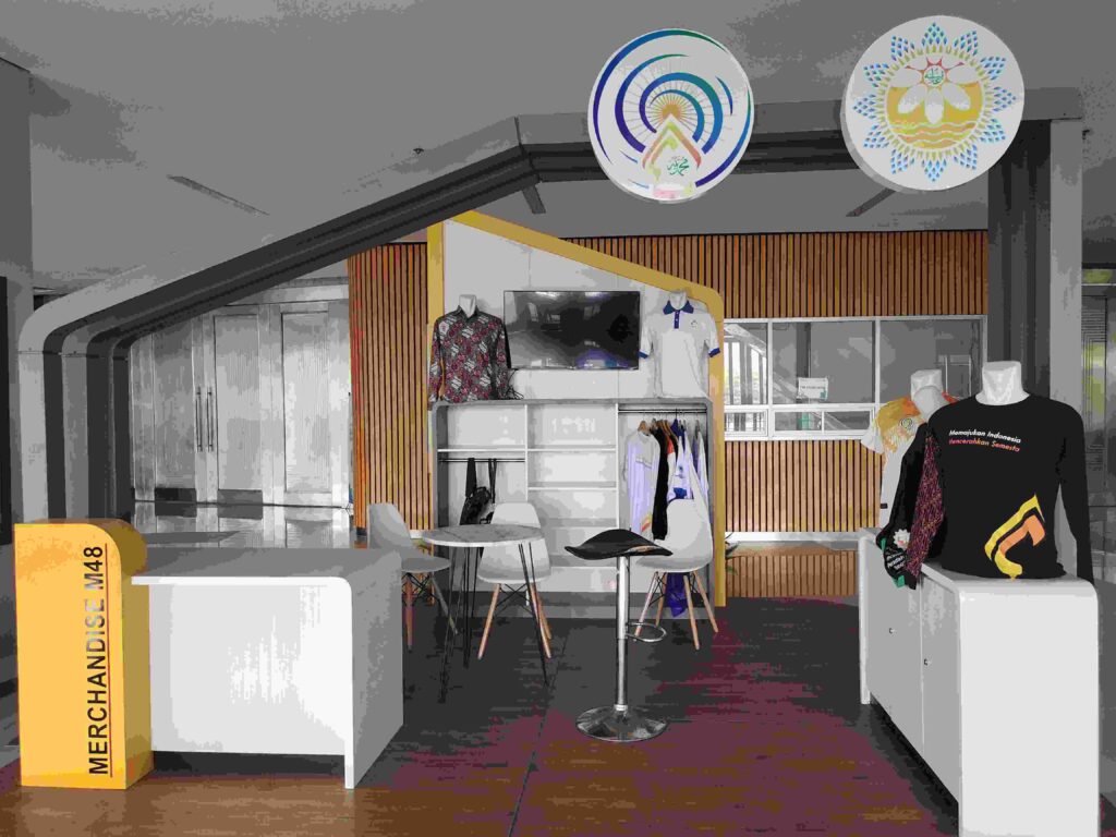 Di sebelah kiri lobby utama terdapat counter merchandise muktamar, sehingga pengunjung dapat sekedar melihat-lihat atau membelikan cinderamata untuk keluarga di rumah.