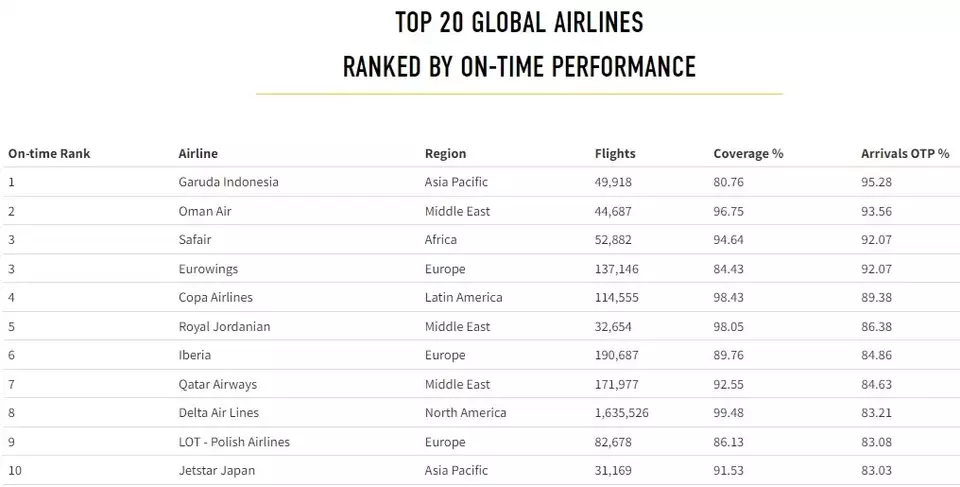 Berikut ini peringkat 10 besar maskapai penerbangan paling tepat waktu di dunia tahun 2023: