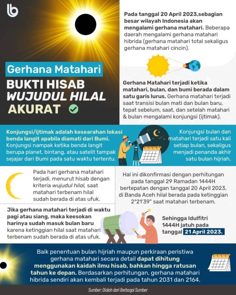 Yang menarik, fenomena gerhana matahari ini menjadi bukti yang memperkuat bahwa pada Jumat, 21 April 2023, sudah Lebaran, sudah menjadi masuk awal bulan baru, yaitu 1 Syawal.
