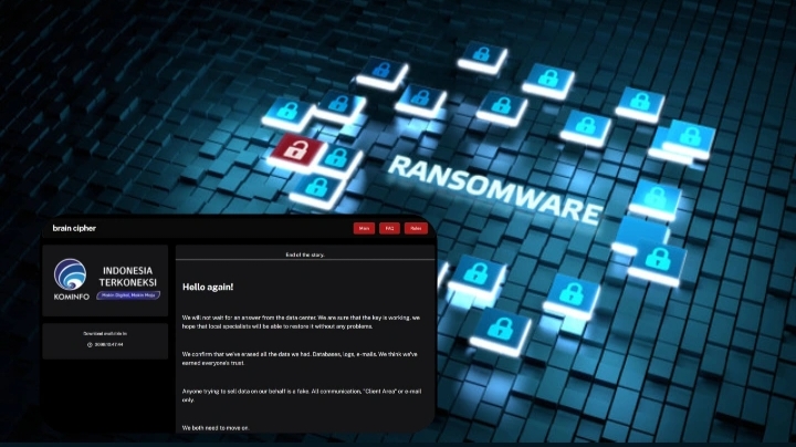 Hal tersebut mereka umumkan di situs dark web Ransomware Live. “Kami tidak akan menunggu untuk jawaban soal pusat data. Kami yakin bahwa kunci (enkripsi) bisa digunakan, kami berharap bahwa tenaga ahli lokal bisa memulihkannya tanpa masalah,” tulis Brain Cipher dalam pengumuman berjudul “End of The Story”, Rabu (03/07/2024) malam.