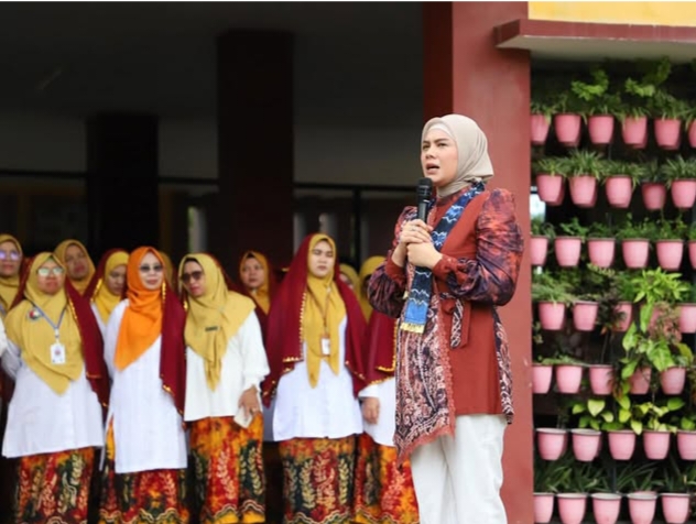 Wakil Wali Kota, Hj. Ananda saat memberikan arahan soal larangan memberi kepada pengemis jalanan dan membuang sampah sembarangan di SMAN 5 Banjarmasin, Jumat [Foto: Instagram Wakil Wali Kota, Hj. Ananda]