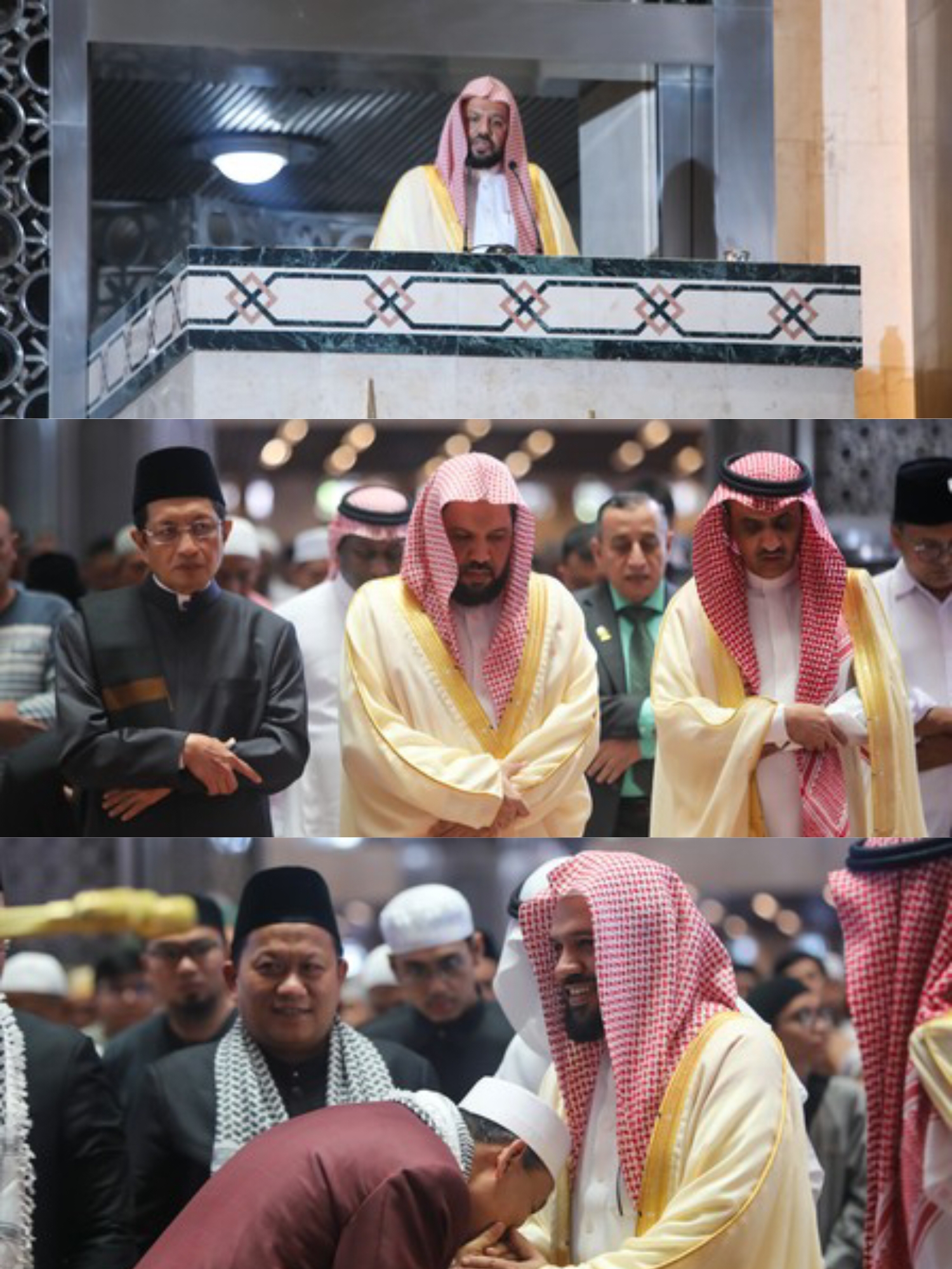 Jakarta, mu4.co.id – Imam Besar Masjid Nabawi Syekh Ahmad bin Ali Al-Hudhaify mengunjungi Masjid Istiqlal. Dirinya pun menjadi imam sekaligus khatib shalat Jumat di sana, Jumat (11/10/2024).