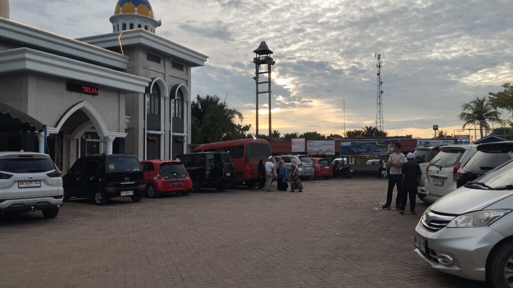 Salah satu masjid di daerah Candi Laras yang bernama Masjid Da’watul Haq Baringin terlihat ramai para pemudik yang menjadikan rest area untuk beristirahat, makan, dan beribadah.