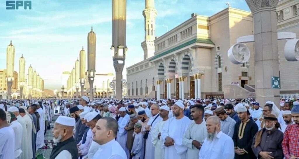 Tsany Ahmad Mudzaky, Ketua Umum Persatuan Pelajar dan Mahasiswa Indonesia (PPMI) Arab Saudi, menyatakan bahwa shalat Id di Masjid Nabawi dimulai pada pukul 6.20 waktu Arab Saudi. Jemaah sudah mulai berdatangan sejak tengah malam karena antusiasme mereka yang tinggi untuk shalat di masjid Rasulullah SAW tersebut.