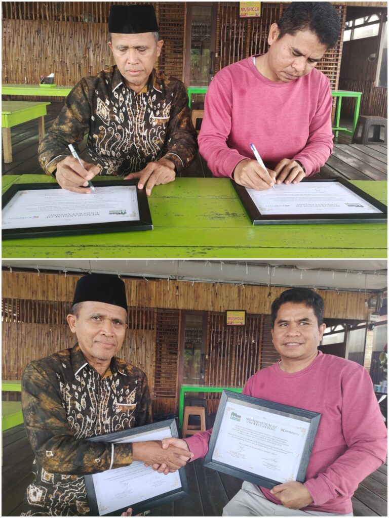 Penandatanganan Kesepakatan Kerja sama (MoU) oleh Ketua Takmir Masjid Al Jihad dan Pimpinan Kompas TV Banjarmasin [Foto: mu4.co.id]