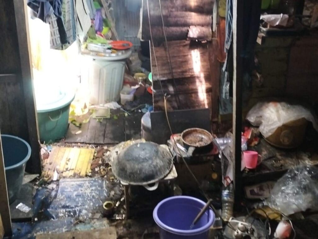 Kini Masjid Al Jihad Banjarmasin kembali melakukan program bedah rumah milik Zainal, salah seorang jemaah tetap yang tinggal di rumah kayu yang sangat sederhana, bahkan bisa dikatakan tak layak untuk dihuni. Nampak perabotan dapur tergeletak di sudut rumah.