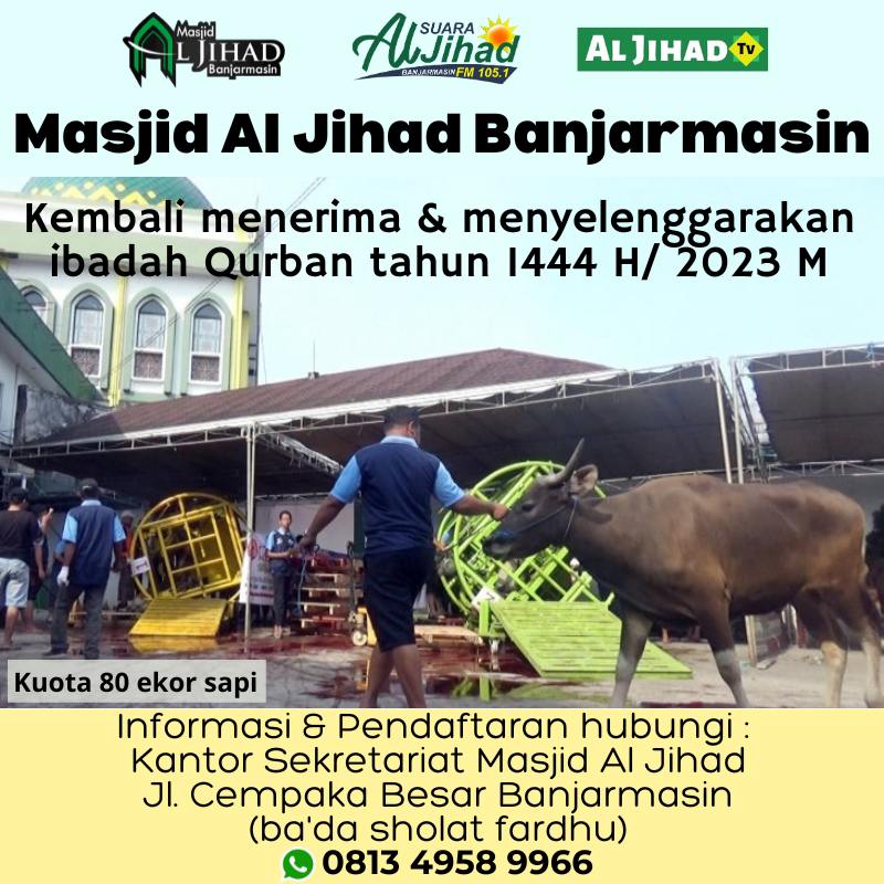Ketua umum takmir masjid Al Jihad Banjarmasin, ustaz H Riza Rahman, Lc menyampaikan, “Untuk tahun ini kuota yang disediakan sebanyak 80 ekor sapi. Silakan bagi kaum muslimin yang ingin menitipkan amanah penyembelihan hewan qurbannya di masjid Al Jihad, pendaftaran masih kami buka.”
