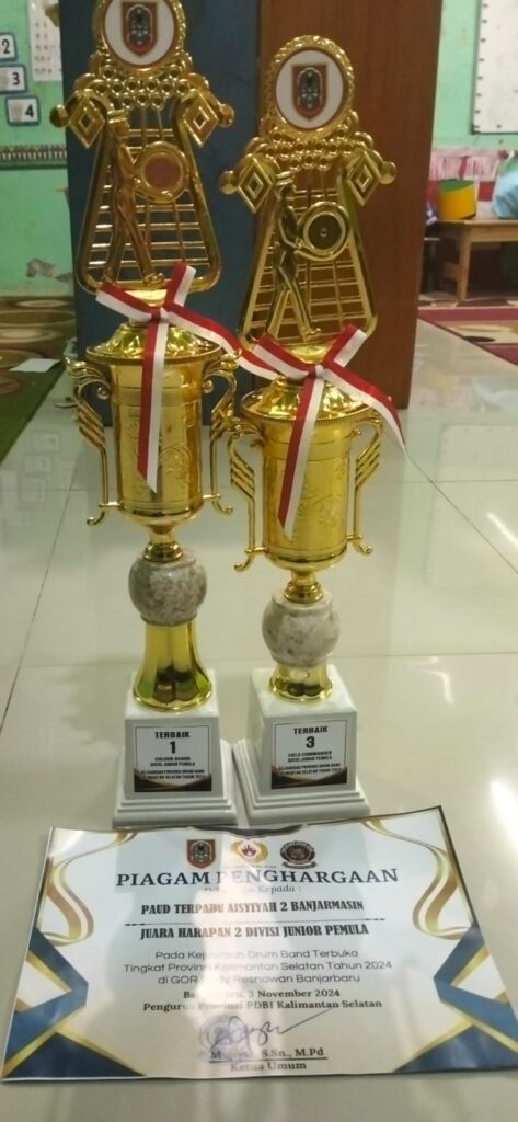 Piala TK ‘Aisyiyah 2 dalam acara Kejuaraan Provinsi Drum Band Kalimantan Selatan 2024. [Foto: TK ‘Aisyiyah 2]