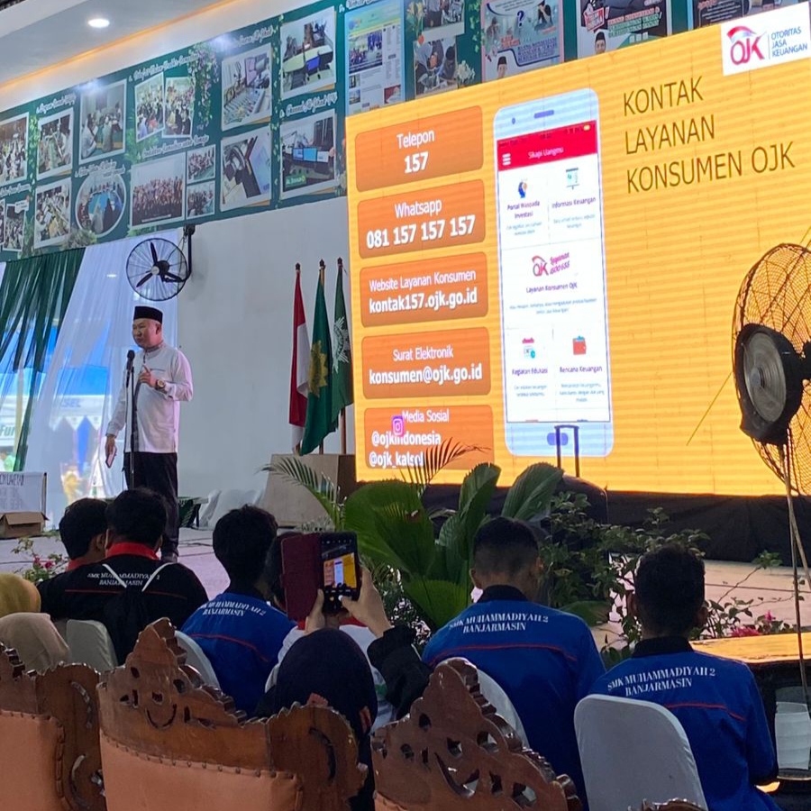 Dalam kesempatan itu, Analis Divisi PEPK, EPK dan LMSt OJK Kalsel, Andy Rahman Yuliman menyampaikan materi bertema “Aman Bermuamalah Digital: Memahami dan Mengamankan Aplikasi Keuangan Digital”.