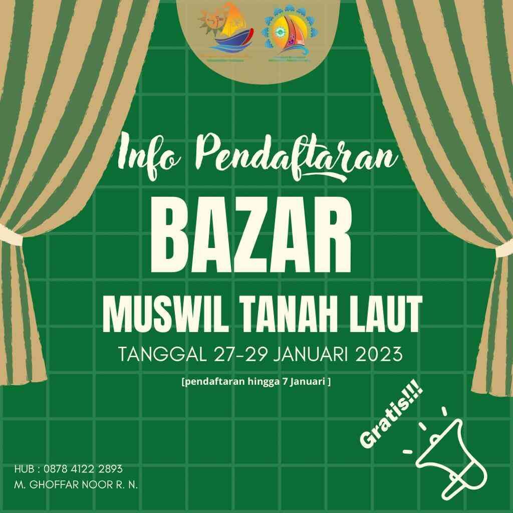 Terkait bazar yang akan dilaksanakan nanti, salah satu panitia Wilayah, ustaz Mim Fadhli Rabbi mengatakan pendaftaran peserta bazar sudah dibuka mulai dari sekarang sampai 7 Januari 2023 dengan menghubungi M. Ghoffar Noor R.N di nomor whatsapp 0878-4122-2893.