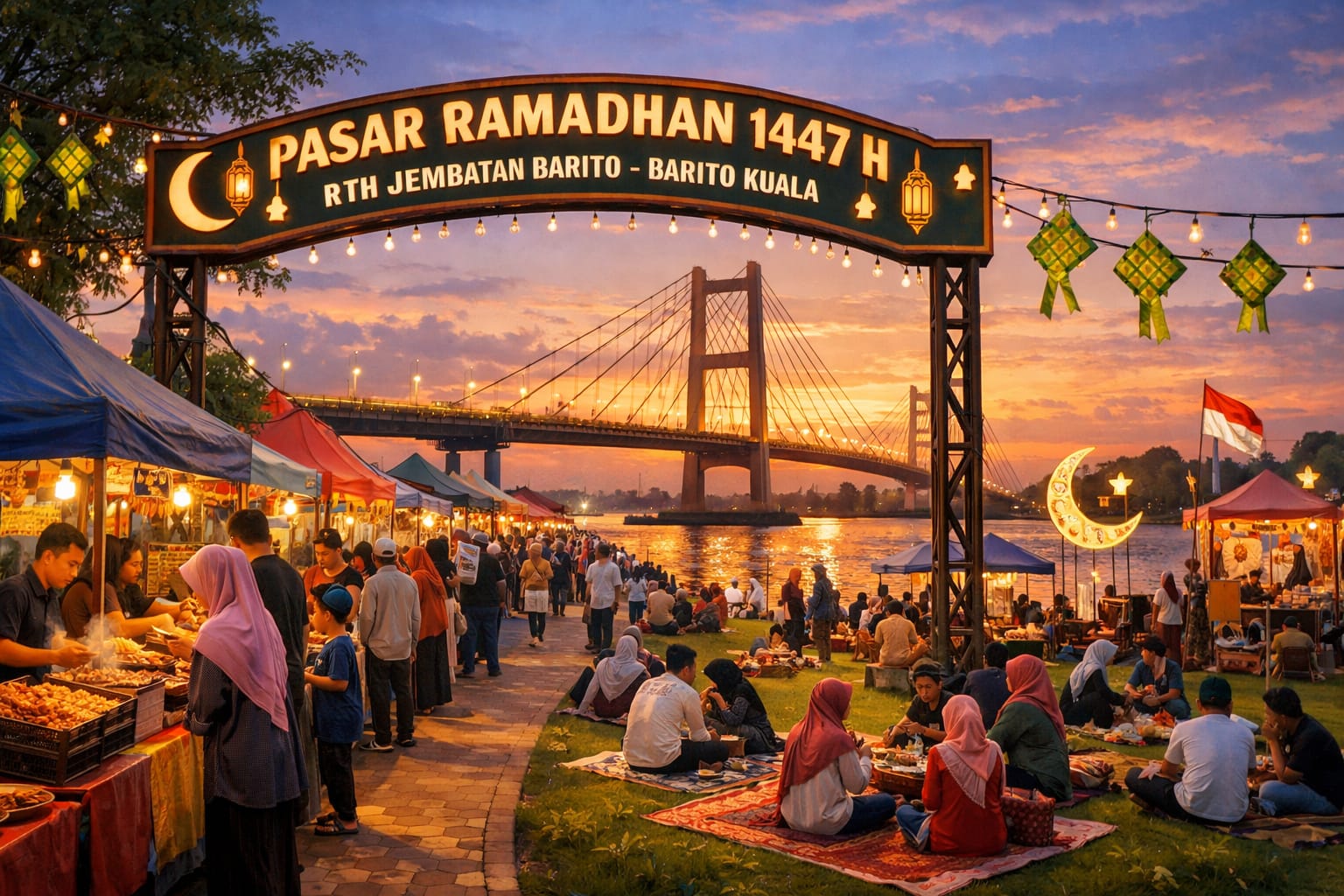 Barito Kuala, mu4.co.id – Pasar Ramadhan 1447 H Kabupaten Barito Kuala (Batola) yang menjual berbagai kuliner telah ditetapkan di Ruang Terbuka Hijau (RTH) yang terletak di bawah Jembatan Barito.