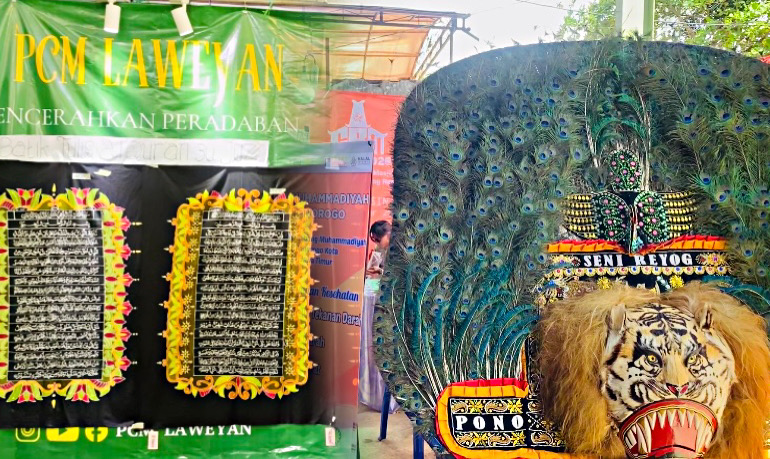 Adapun cabang pertama yang berhasil mencuri perhatian adalah Pimpinan Cabang Muhammadiyah (PCM) Ponorogo yang menampilkan dua topeng besar Seni Reog didepan stand mereka.