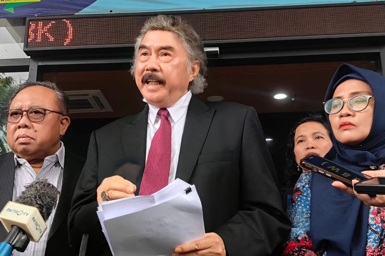 Ketua Tim hukum PDI-P Gayus Lumbuun [tengah] usai mengajukan gugatan untuk KPU di Pengadilan Tata Usaha Negara [PTUN], Cakung, Jakarta Timur [Foto: kompas.com]