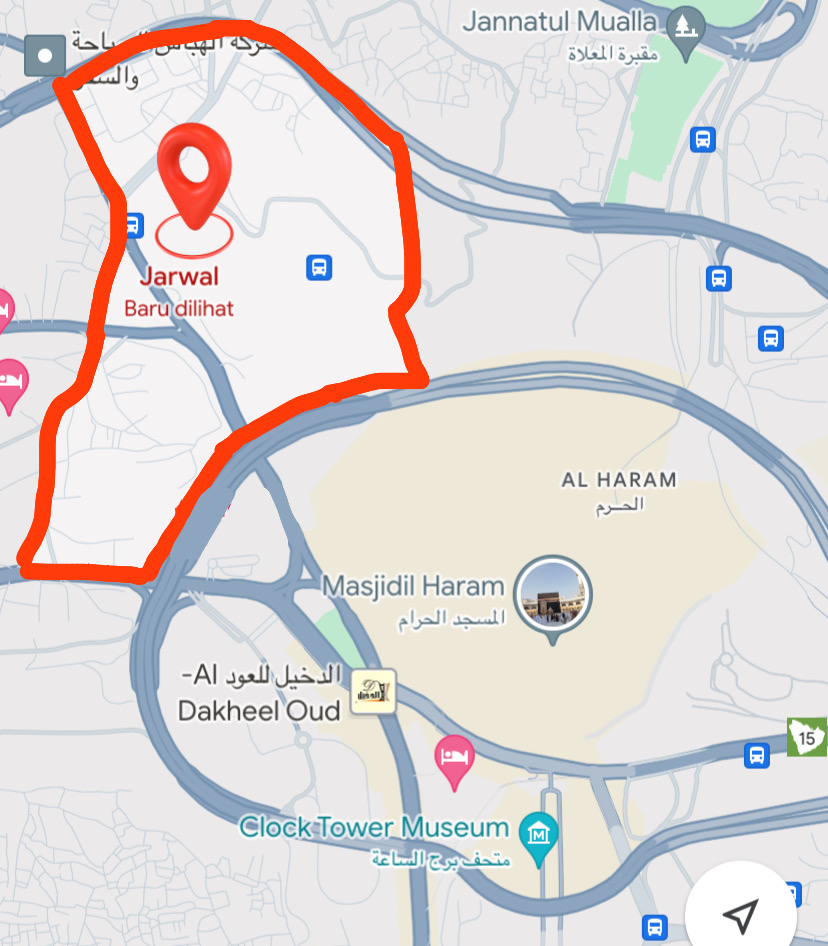 Wilayah Jarwal sendiri berada tepat di sebelah barat dari Masjidil Haram. Dengan jarak 1-2 kilometer, kawasan Jarwal memiliki akses terdekat ke bangunan perluasan Masjidil Haram.