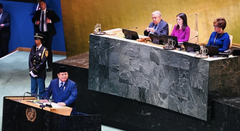 Presiden Prabowo saat berikan pidatonya dalam Sidang Umum PBB, New York, Selasa [23/9]. [Foto: laman Presiden RI]