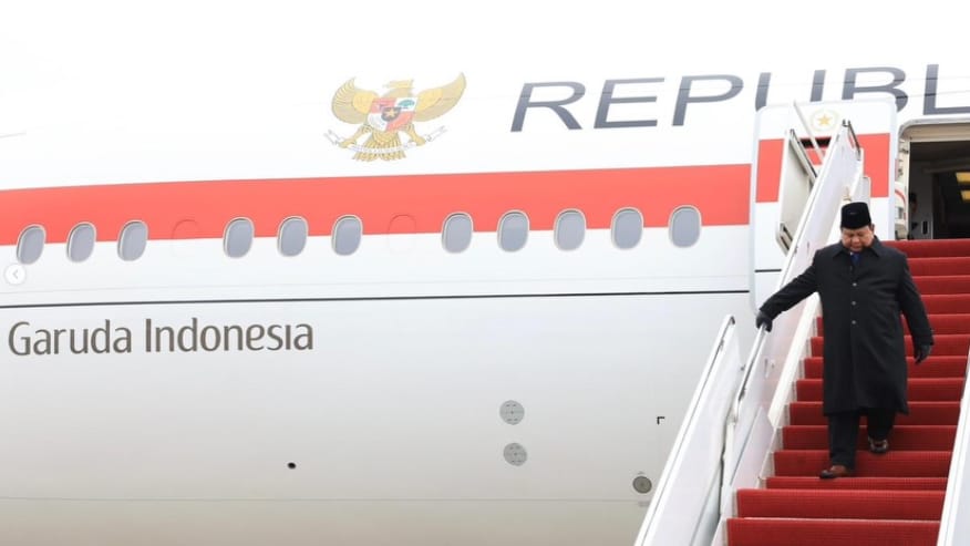 Pesawat Garuda Indonesia PK-GIF membawa Prabowo tiba pukul 12.00 waktu setempat, didampingi Sekretaris Kabinet Teddy Indra Wijaya serta Menteri ESDM Bahlil Lahadalia.