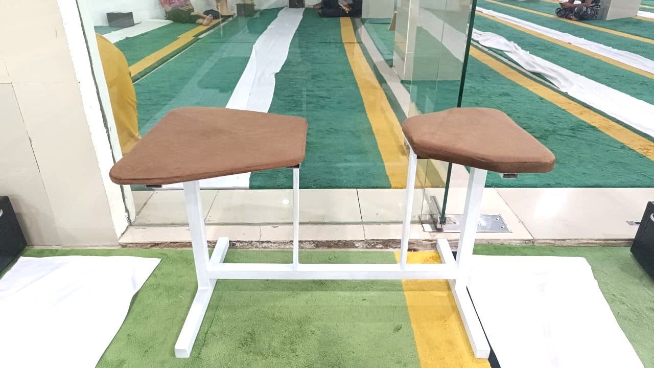 Bila anda menerka-nerka mungkin itu adalah kursi alat bantu untuk sholat duduk. Ya, anda benar.