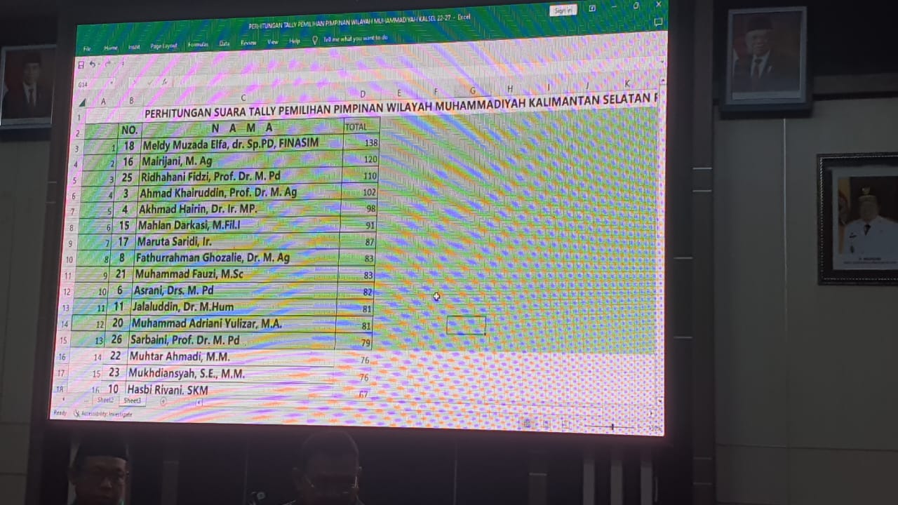 Tanah Laut, mu4.co.id – Sidang pleno Musyawarah Wilayah ke-38 Muhammadiyah Kalimantan Selatan (Kalsel) telah menetapkan 13 nama formatur calon Pimpinan Wilayah Muhammadiyah Kalsel berdasarkan dari hasil perhitungan suara tally pada Ahad dinihari (29/01).