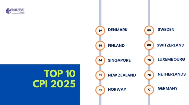 Indeks Persepsi Korupsi menilai 182 negara dan wilayah dengan skor 0–100, di mana 0 menunjukkan korupsi tinggi dan 100 sangat bersih. CPI 2025 disusun dari 13 sumber, termasuk penilaian pakar dan survei pelaku usaha.