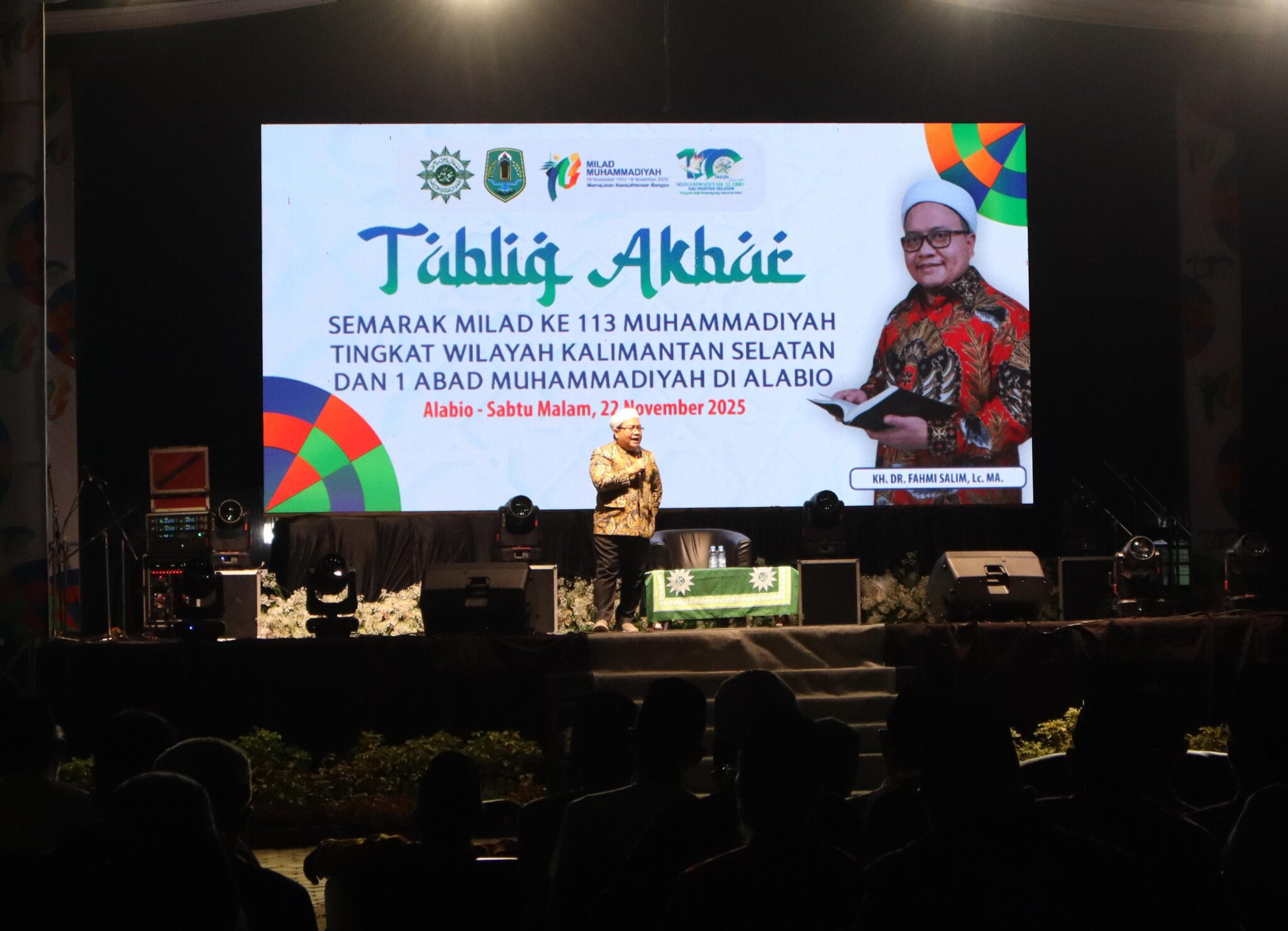 Alabio, mu4.co.id – Dalam rangka Milad 1 Abad Muhammadiyah Kalimantan Selatan, diselenggerakan Tablig Akbar di panggung utama komplek Perguruan Mu’allimin Muhammadiyah Alabio pada Sabtu malam (22/11/2025).