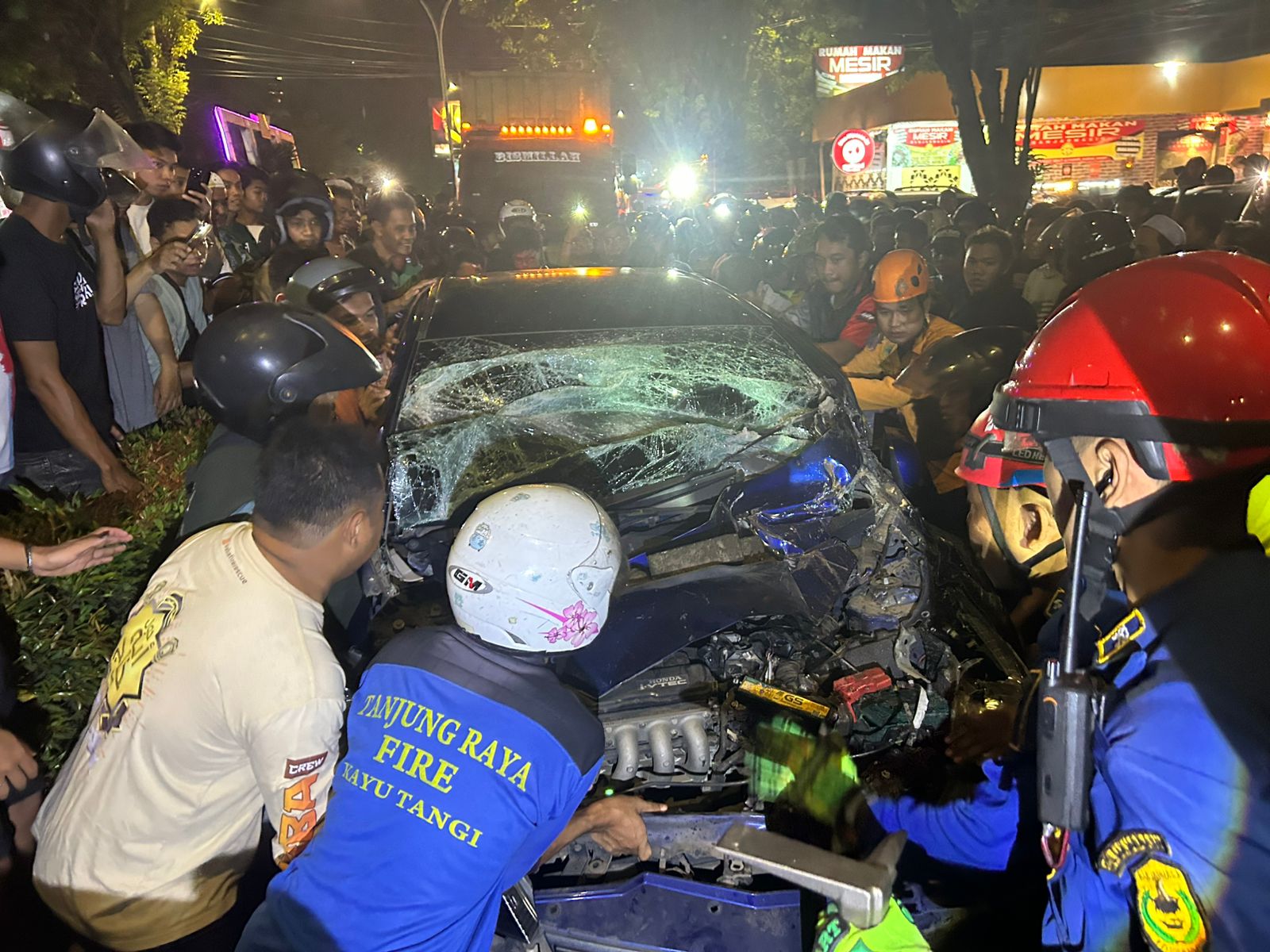 Petugas Pemadam Kebakaran (Damkar) Banjarmasin pun segera dikerahkan untuk membantu proses evakuasi korban yang terjebak di dalam mobil.