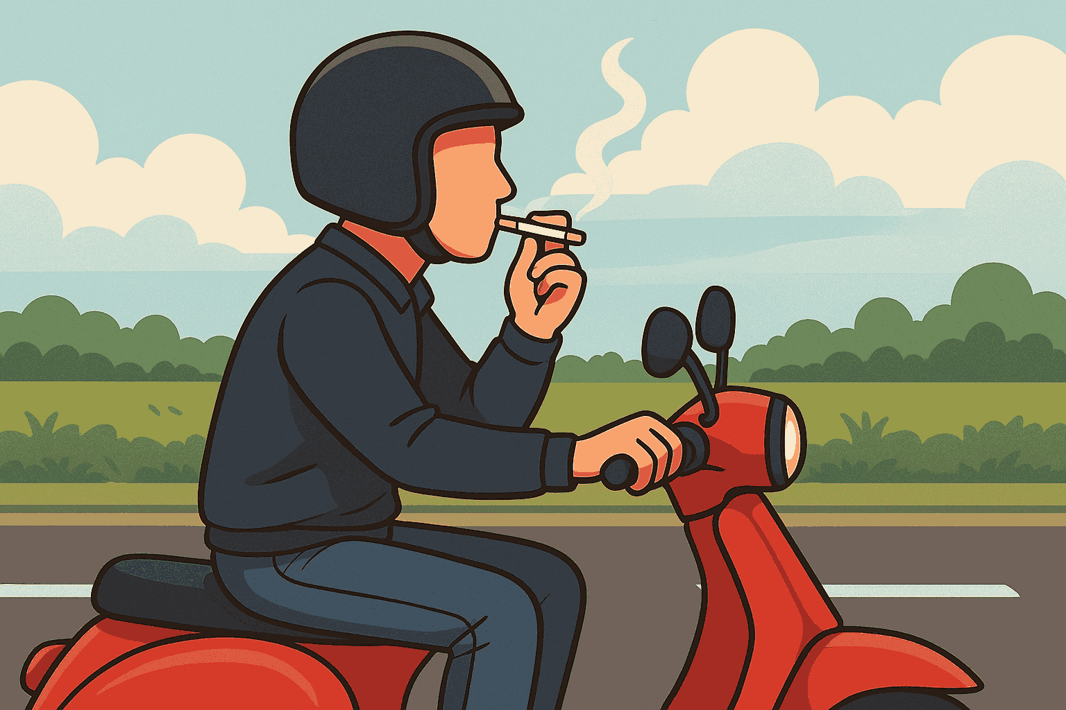 Selain itu, Kementerian Perhubungan melalui Peraturan Menteri Perhubungan Nomor 12 Tahun 2019 melarang pengendara motor merokok atau melakukan aktivitas yang dapat mengganggu konsentrasi saat berkendara.