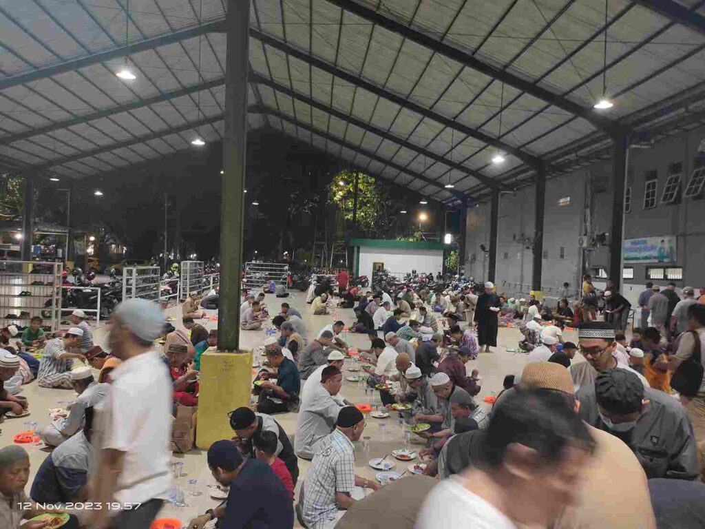 Seusai salat Isya, nampak jemaah masjid Al Jihad antusias menuju halaman parkir belakang untuk duduk bersama dalam suasana keakraban menikmati sajian yang sudah tersedia.