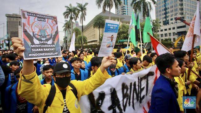 Aksi Indonesia Gelap yang digelar pda Senin [17/2]. [Foto: CNBC]