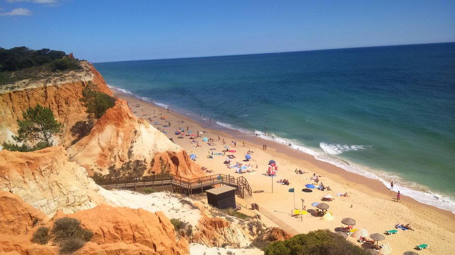 Pantai ini terkenal berkat tebing merah setinggi 40-meter yang membentang sepanjang pantai, menciptakan pemandangan dramatis dengan kontras laut biru dan pasir keemasan. Tidak mengherankan jika Praia da Falésia meraih gelar pantai terbaik Tripadvisor tahun sebelumnya.
