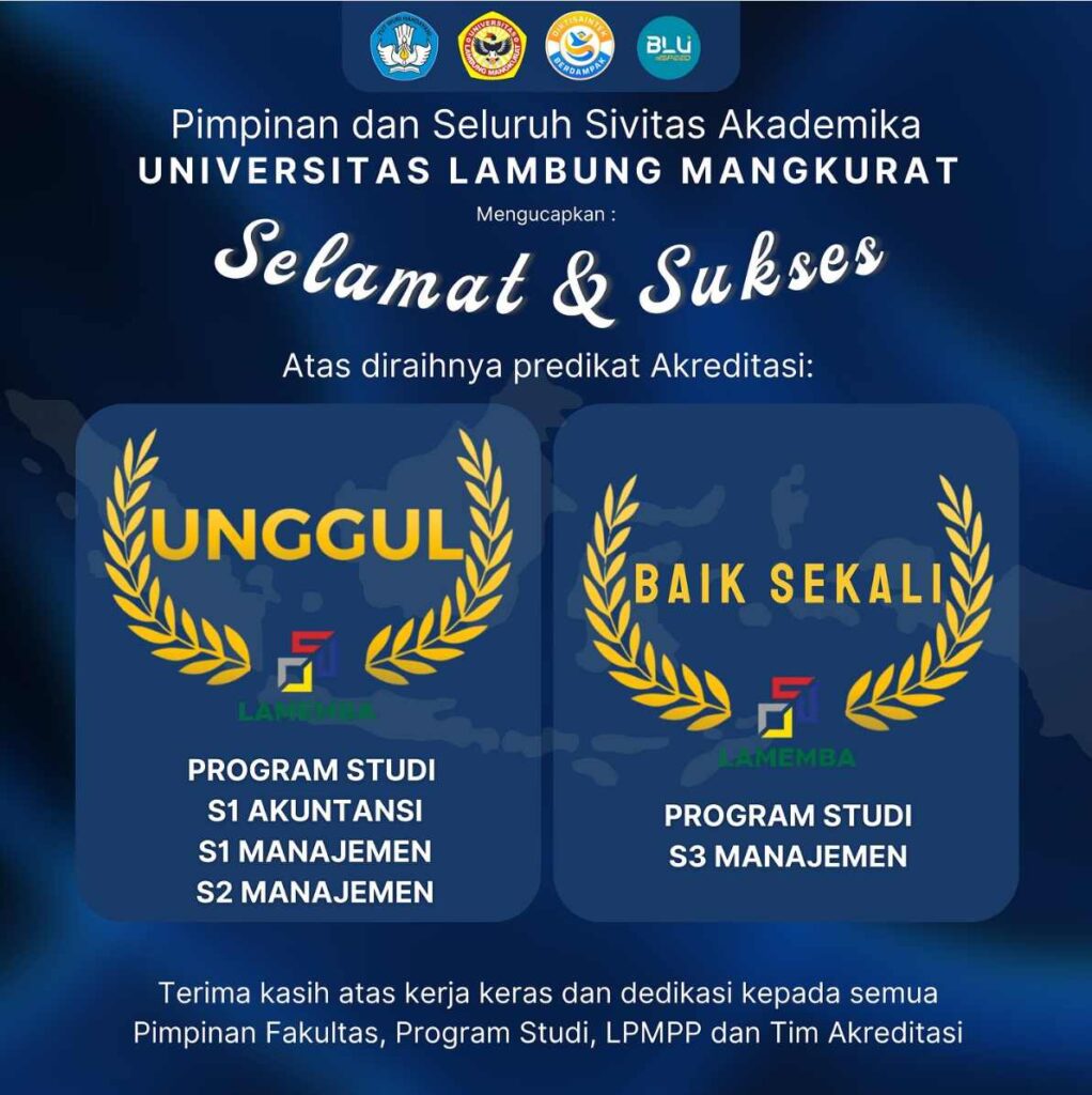 Penghargaan tersebut diberikan oleh Lembaga Akreditasi Mandiri Ekonomi Manajemen Bisnis dan Akuntansi (LAMEMBA) yang berlaku sejak 29 September 2025 hingga 29 September 2030. Keputusan tersebut kemudian disahkan oleh Rektor ULM, Prof. Dr. Ahmad Alim Bachri, S.E.,M.Si.,Ak.,CA pada Rabu, 8 Oktober 2025.