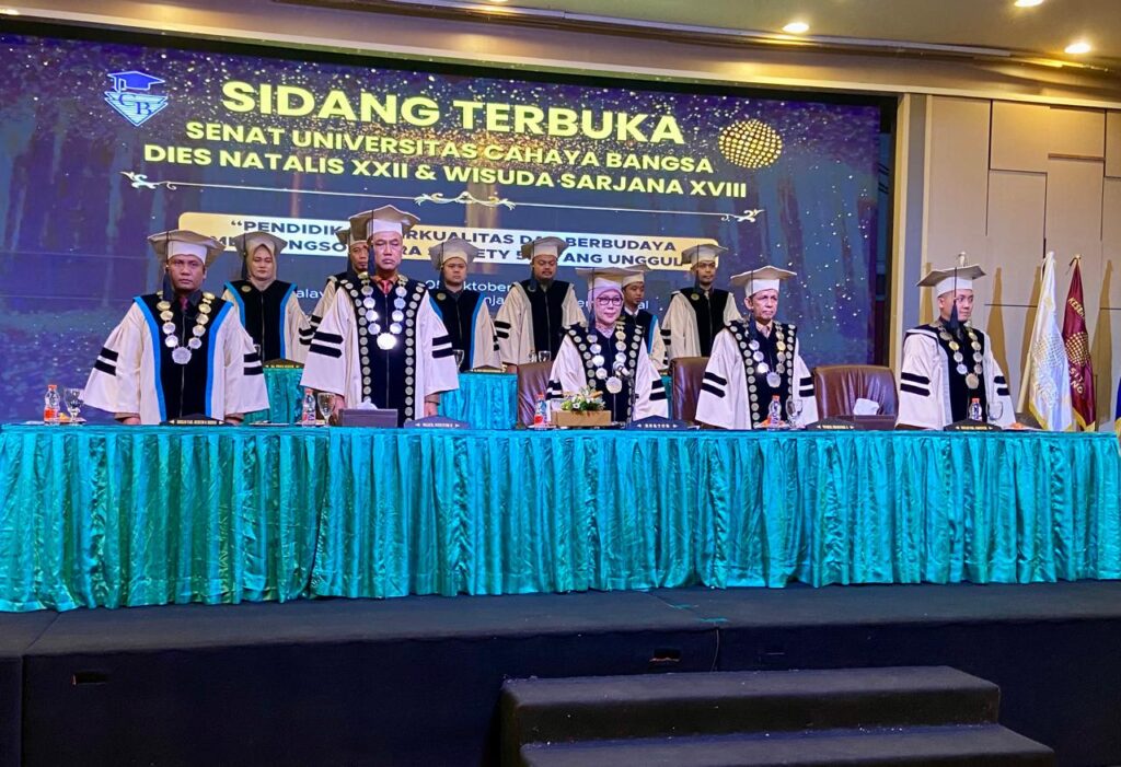 Banjarmasin, mu4.co.id – Universitas Cahaya Bangsa (UCB) kembali mencetak sebanyak 202 orang sarjana dalam Sidang Senat Terbuka Wisuda Sarjana XVIII serta Dies Natalis XXII, di Hotel Banjarmasin Internasional (HBI), Sabtu (05/10/2024).