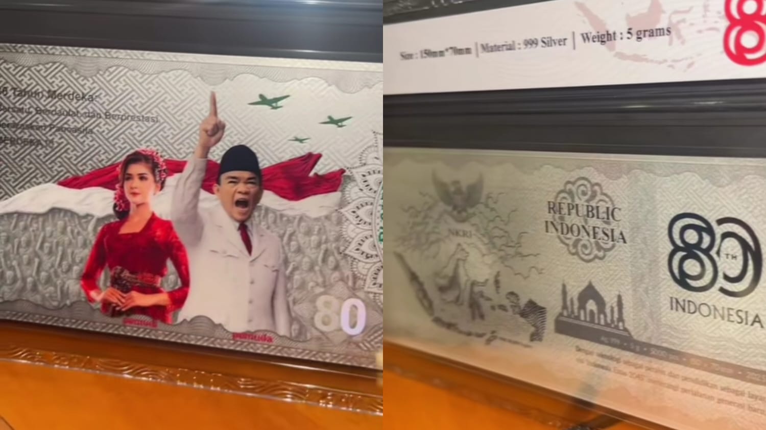 Dalam video yang beredar, terlihat uang kertas tersebut bergambar Ir. Soekarno, bendera merah putih, peta Indonesia, Garuda Pancasila, serta tulisan ’80 NKRI’. Namun faktanya, uang pecahan “80” tersebut bukan keluaran resmi Bl, melainkan lembar perak produk swasta (pembuat logam/silver) yang dibuat sebagai peringatan 80 tahun Indonesia Merdeka.