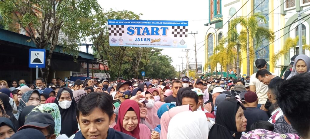 Banjarmasin, mu4.co.id – Belasan ribu warga Banjarmasin semarakkan jalan sehat jelang Muktamar Muhammadiyah ke-48 dan meriahkan Milad Muhammadiyah ke-110, Sabtu (5/11/2022) di Masjid Al-Jihad. Sebelum acara utama dimulai, ada penampilan dari grup drumband dan beberapa sambutan.