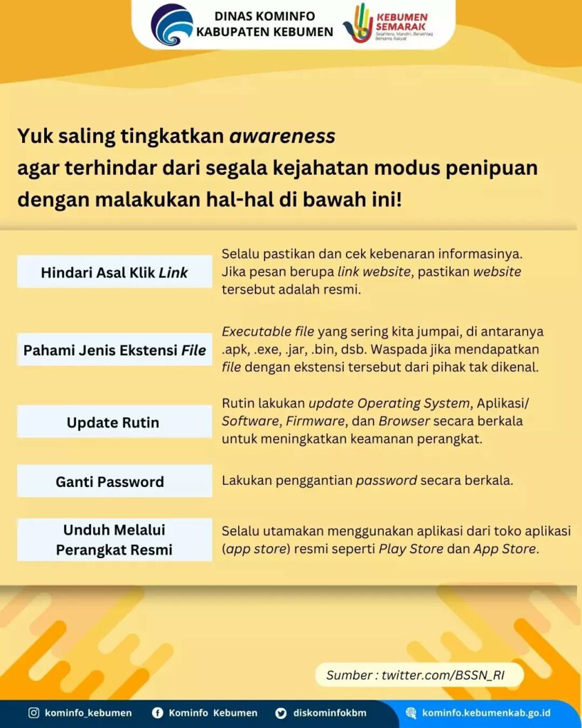 Lewat kompas.com, masyarakat diimbau agar tidak terburu-buru mengisi username dan password dalam aplikasi serta diminta langsung mengganti seluruh password setiap akun, terutama aplikasi perbankan (mobile banking) atau uang elektronik (Dana, Gopay, Ovo, Shopeepay, dll). Jangan lupa tambahkan 2FA (Two Factor Authentication) untuk keamanan lebih.