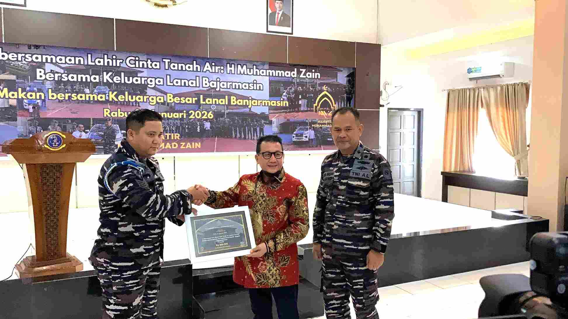 Banjarmasin, mu4.co.id – Setelah beberapa pekan yang lalu menghibahkan 2 buah mobil operasional untuk Pangkalan TNI Angkatan Laut (Lanal) Banjarmasin, H. Muhammad Zain melalui Yayasan Mahatir Mohammad Zain yang dimilikinya, kembali bersilaturahmi sekaligus makan bersama dengan Keluarga Besar Lanal Banjarmasin.